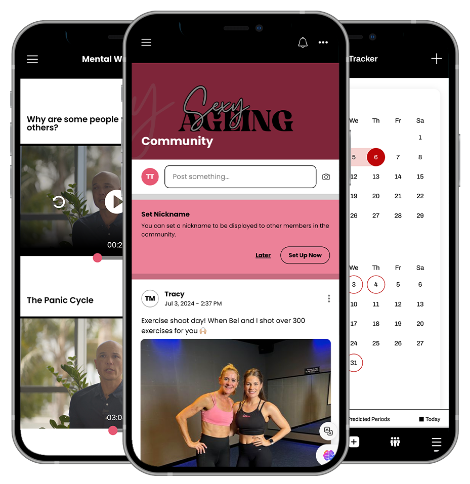 Sexy Ageing is your "Menopause Coach in your pocket" where you'll find everything you need to understand and manage your symptoms. With expert guidance and science-backed information covering nutrition, fitness, and mental wellness, we're here to help you navigate and re-define your menopause journey.